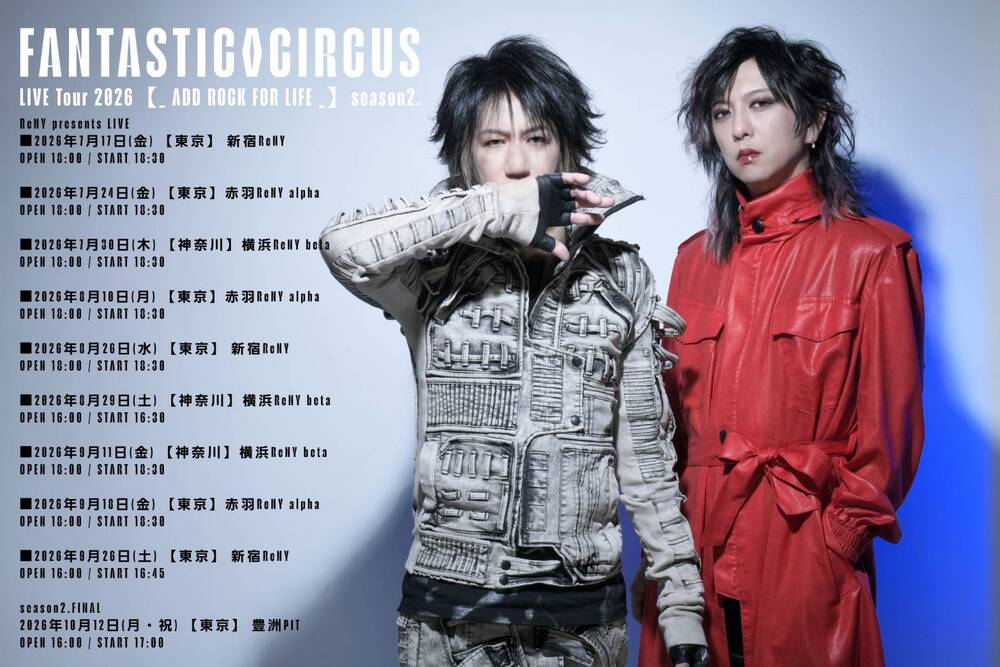 FANTASTIC◇CIRCUS LIVE Tour 2026【_ ADD ROCK FOR LIFE _】season2.の開催が決定!
